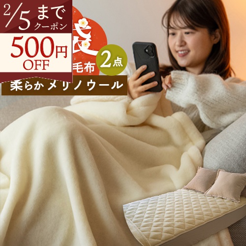 上質なメリノウールを使用した毛布と敷きパッドのセット。蒸れずにあったか快適にお使いいただけます。
