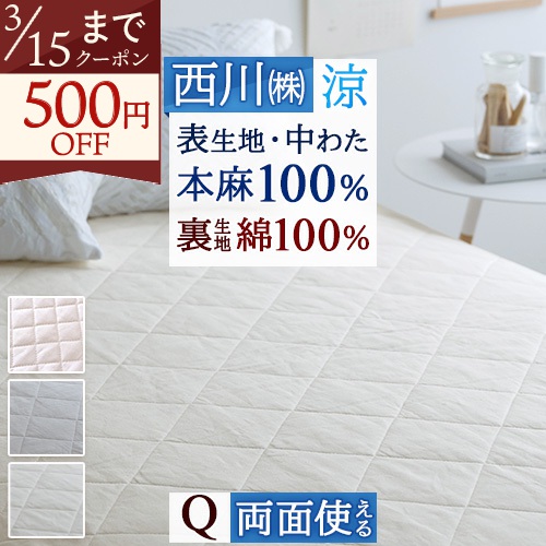 『綿』と『麻』両面楽しめる、リバーシブルタイプ。長い季節使える敷きパッドです。