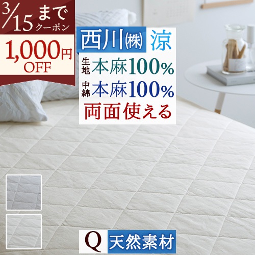 中わたにも麻がたっぷり入った『麻敷きパッド』両面使えるリバーシブルタイプ!