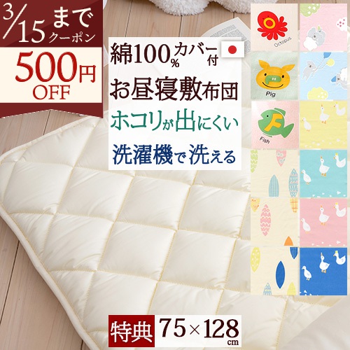 ふんわり暖か、綿混のお昼寝敷き布団。側生地は目詰みの良い綿100%使用。日本製で丁寧に仕上げたオリジナル商品にカバー…