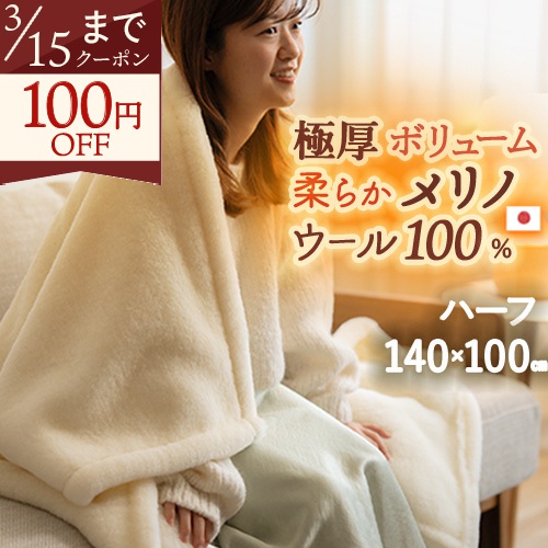 ふわっふわなウール毛布ハーフサイズ、厚手タイプが新登場!ウール特有のムレ感のない心地よいあたたかさが持続しぽかぽかあ…