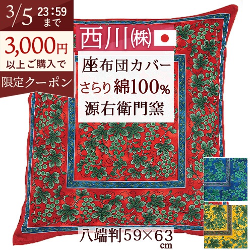 座布団カバー 八端判 西川 日本製 源右衛門窯 綿100% 59×63cm