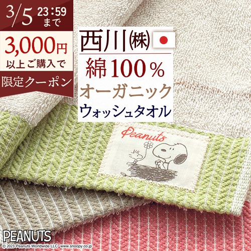 みんな大好き!スヌーピーのウォッシュタオル。綿100%を使用した日本製。