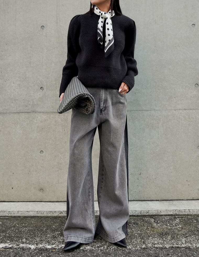 配色デザインでスタイルアップも◎パネルワイドデニム