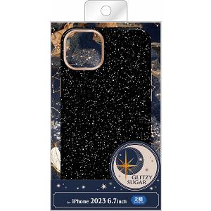iPhone 15 Plus/オープンレザーケース キラキラ GLITZY SUGAR/ブラック