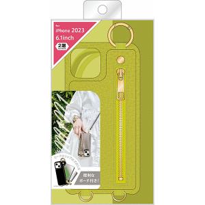 iPhone 15/オープンレザーショルダーストラップポーチ付m1n1/ピスタチオ