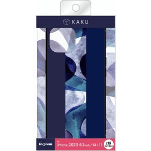 iPhone 15/iPhone 14/ハイブリッドケース KAKU/ストライプ/ブルー