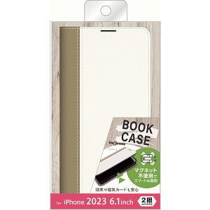 iPhone 15/耐衝撃 手帳型レザーケース Noble/ホワイト/トープ
