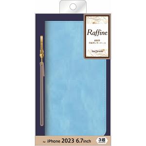 iPhone 15 Pro Max/耐衝撃 手帳型レザーケース Raffine/ブルー