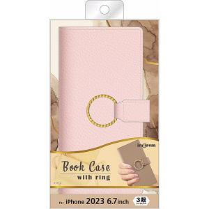 iPhone 15 Pro Max/耐衝撃 手帳型レザーケース KAKU Ring/ピンク