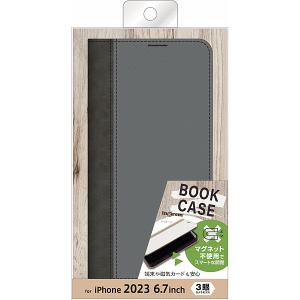 iPhone 15 Pro Max/耐衝撃 手帳型レザーケース Noble/グレー/ブラック
