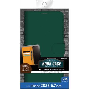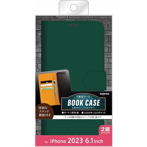 iPhone 15/耐衝撃 手帳型レザー シンプル マグネット/グリーン