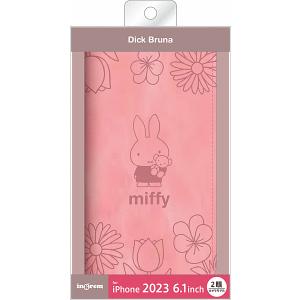 iPhone 15/耐衝撃 手帳型レザーケース Raffine/ミッフィー_ピンクフラワー