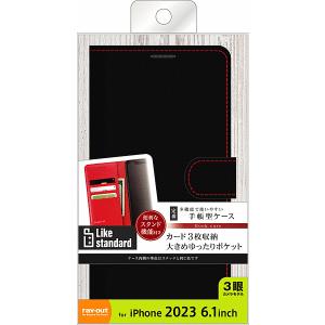 iPhone 15 Pro/耐衝撃 手帳型レザーケース シンプル マグネット/ブラック/レッド