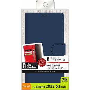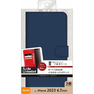 iPhone 15 Pro/耐衝撃 手帳型レザーケース シンプル マグネット/ダークネイビー