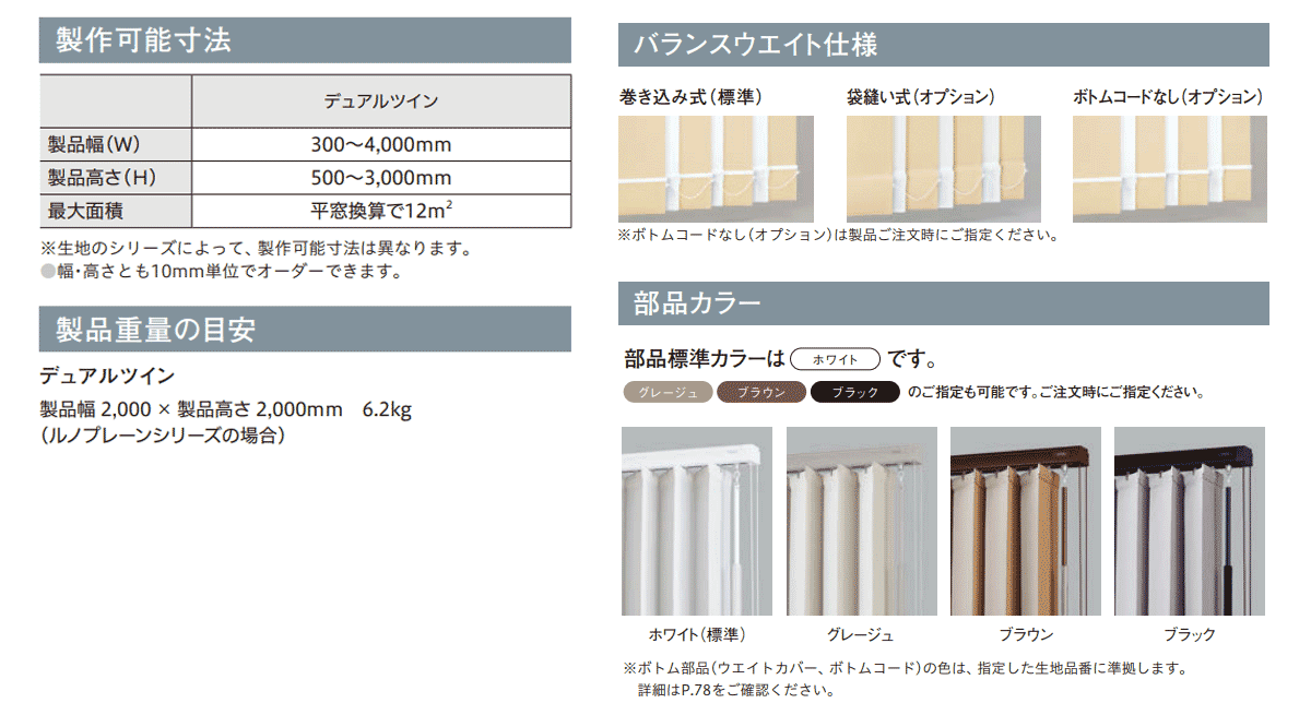 縦型ブラインド「デュアル」「デュアルツイン」製品仕様