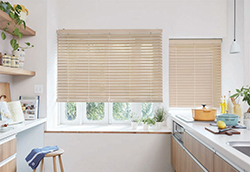 スラット「耐水」は樹脂製の木製調ブラインド。製品には水に強い素材を使用。バスルームやキッチン結露対策にも効果的です。