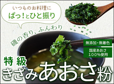 ![]() あおさの食べ方新提案!特級きざみあおさ 送料無料1,280円~ |