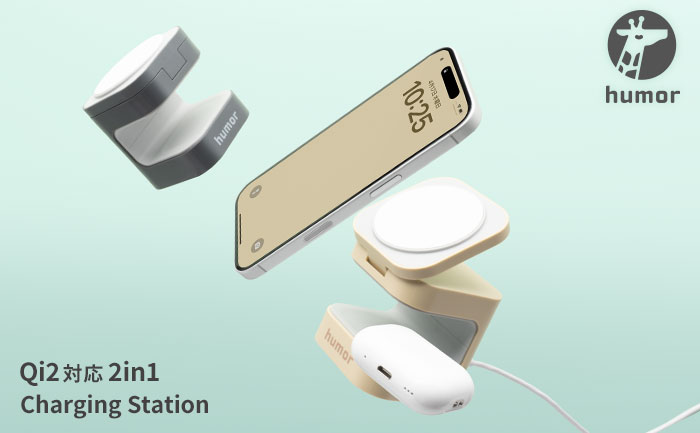 おしゃれで機能的なスマートプロダクトを生み出す「humor(ユーモア)」から2in1ワイヤレス充電器が登場しました。コンパクトなデザインでデスク周りもスッキリ。これ1台でiPhoneとAirPodsを同時に充電が可能。