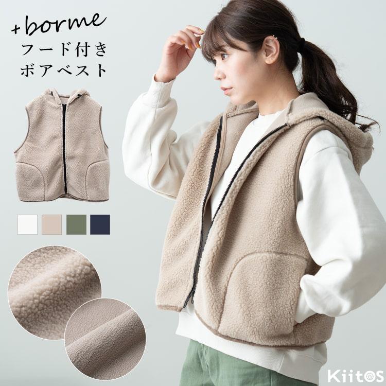 - ベスト レディース 秋 冬 前開き ボア フード付き おしゃれ 防寒 厚手 ノースリーブ 裏起毛 洗える 上品