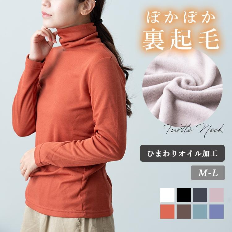 - カットソー 長袖 レディース 裏起毛 タートルネック しっとり ひまわりオイル加工 tシャツ 暖かい オフィス おしゃれ 秋 冬