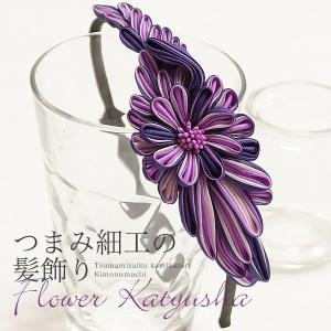 ◎つまみ細工 髪飾り「パープル つまみのお花カチューシャ」