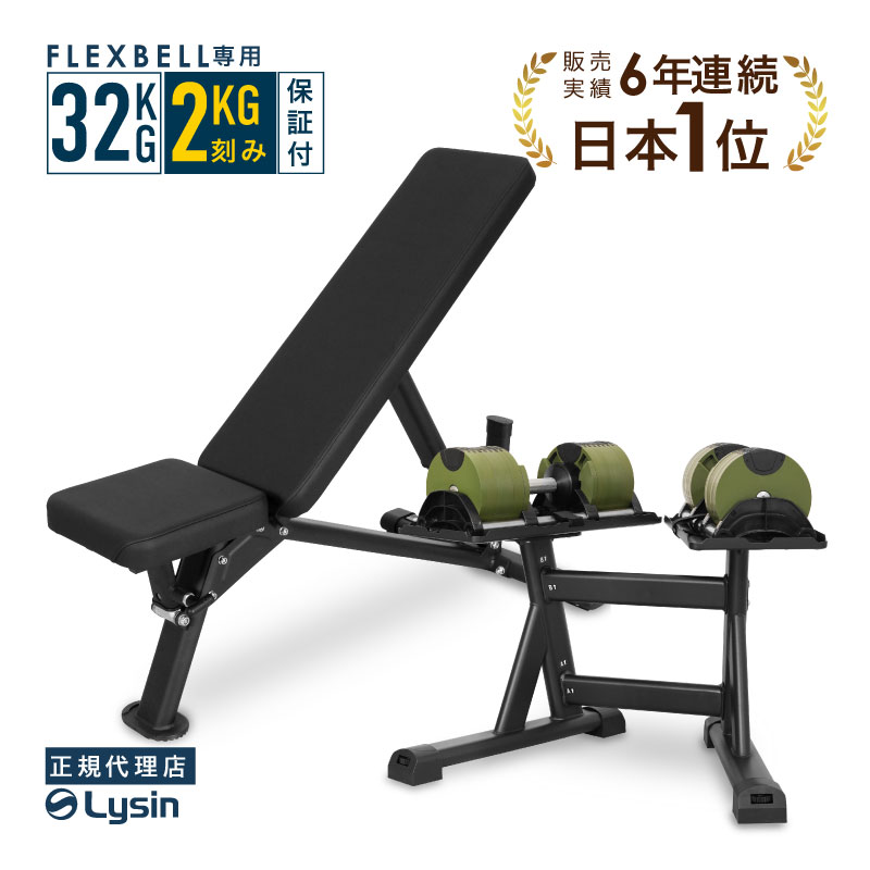 \新発売/FLEXBELL ダンベル2kg刻み 32kg 2個専用スタンド ベンチセット