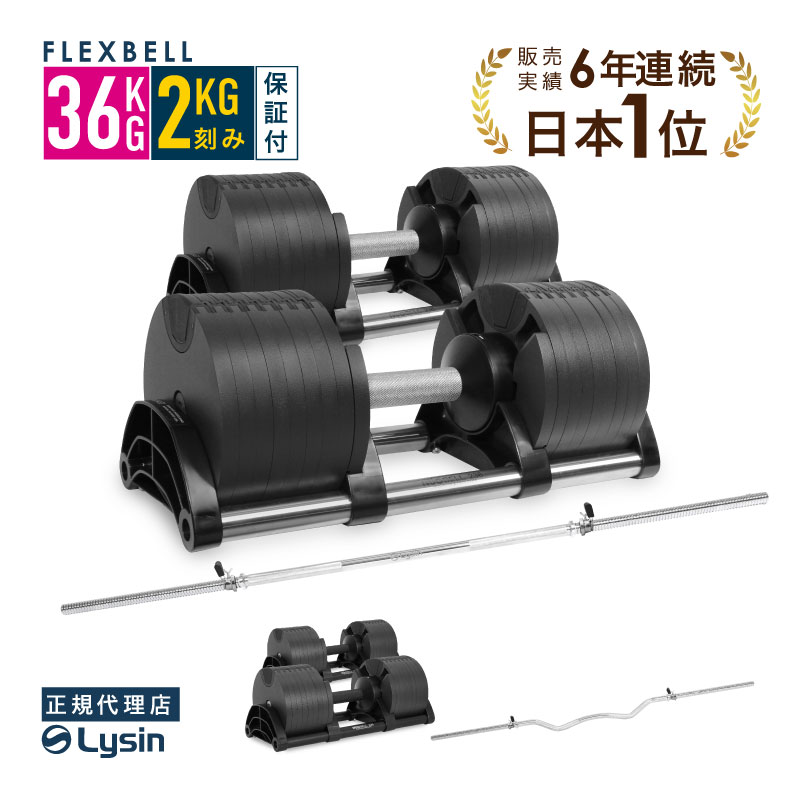 \新発売/FLEXBELL ダンベル2kg刻み 36kg 2個バーベルシャフトセット