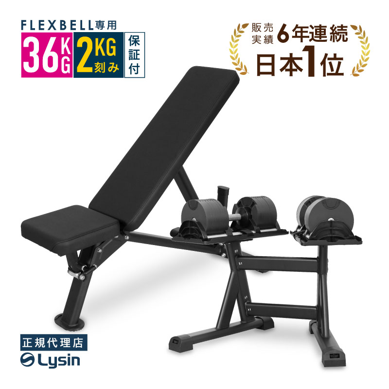 \新発売/FLEXBELL ダンベル2kg刻み 36kg 2個専用スタンド ベンチセット