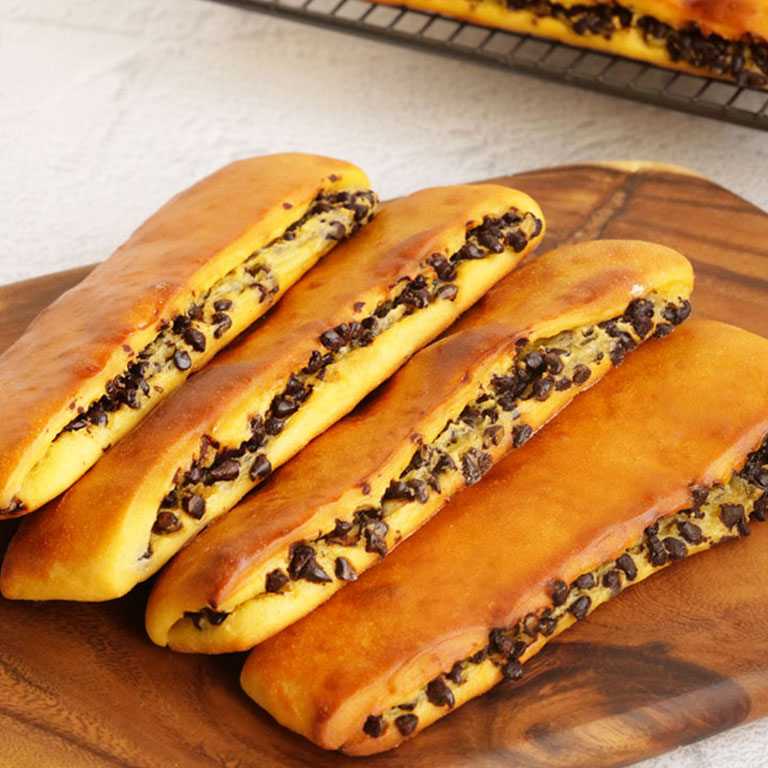 牛乳とバターが香るほんのりと甘い生地なのでクリームや餡子はもちろん、チーズやハムなどの総菜系ともよく合います。お好みの具材を巻き込んでアレンジするのもオススメです。