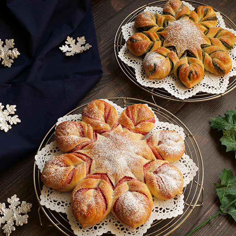 クリスマスにピッタリな雪の結晶を模したスノーフレークブレッド。