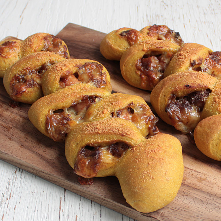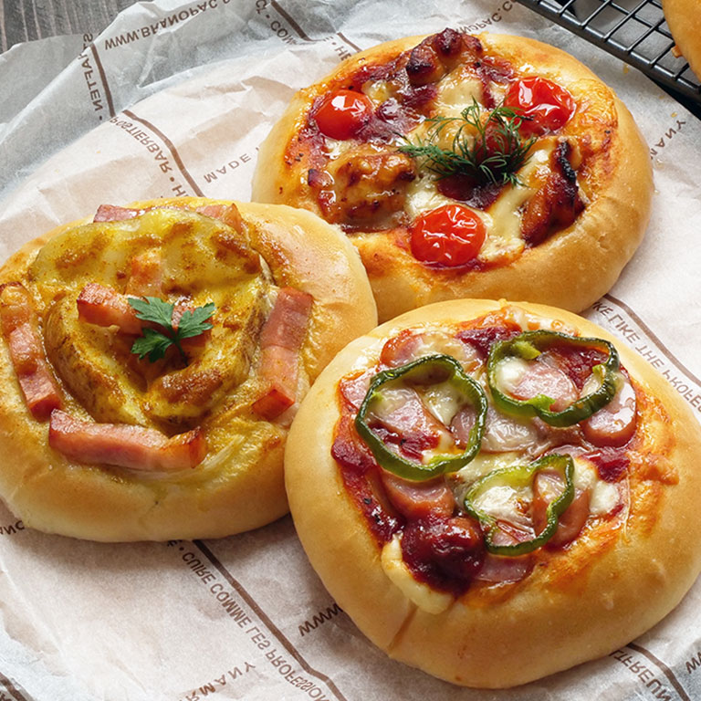 きめ細かく絹のように滑らかでモチモチした食感のパン生地と具材やチーズの旨みが口いっぱいに広がります。