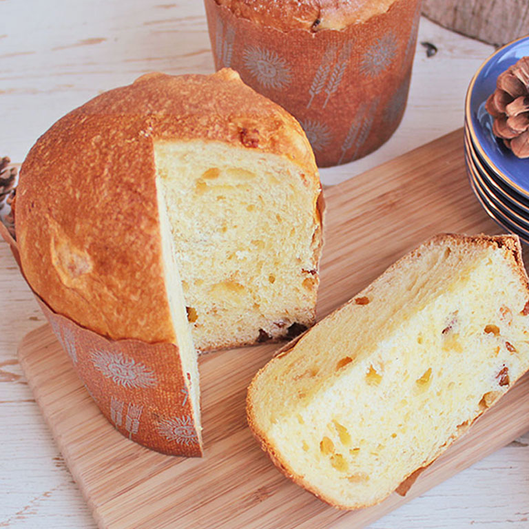 パネトーネ種と呼ばれる天然酵母を使ったイタリア・ミラノの伝統発酵菓子です。「はるゆたかプレミアム7」を使うと、よりモチモチ食感、ふっくら感をお楽しみ頂けます。