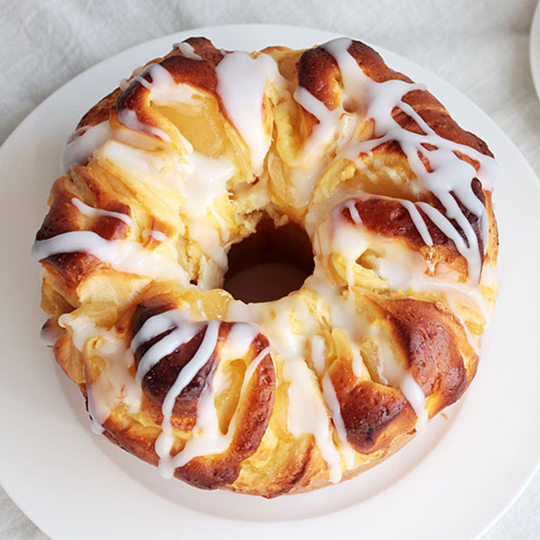 ヘーゼルナッツの風味豊かなヌテラを巻き込むことで、切り分けた際に現れる美しい渦巻模様がテーブルをさらに魅力的に演出します。