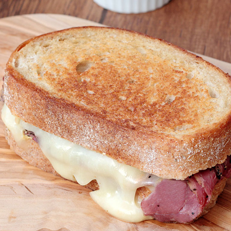 ライ麦パンにコンビーフ、ザワークラウト、スイスチーズ、ロシアンドレッシングを挟んでグリルしたアメリカ・ニューヨーク発祥の人気サンドイッチです。