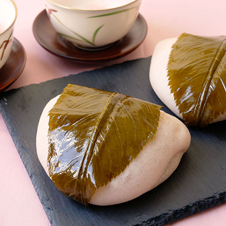 北海道産強力粉プレミアム7の特徴であるしっとりもちもちとした食感を活かして、桜エキスで色付けした生地を白く焼き上げることで見た目もかわいい桜餅風に仕上がります。