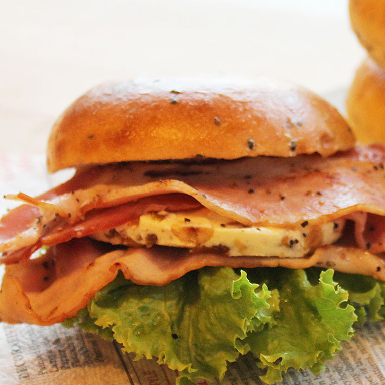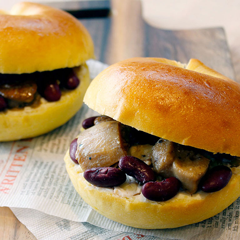 栗のスプレッドとポルチーニのパンプキンベーグルサンド