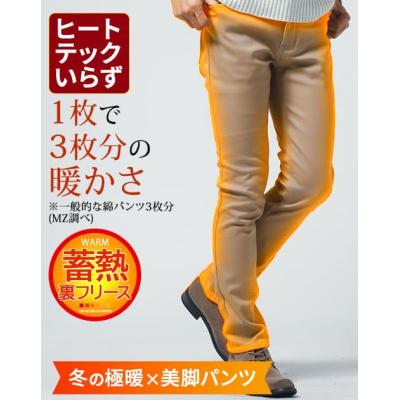 裏フリース素材 裏起毛スキニーテーパードストレッチカラーチノパンツ