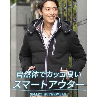 トリコロールデザインパイピングフード付き中綿ダウンジャケット
