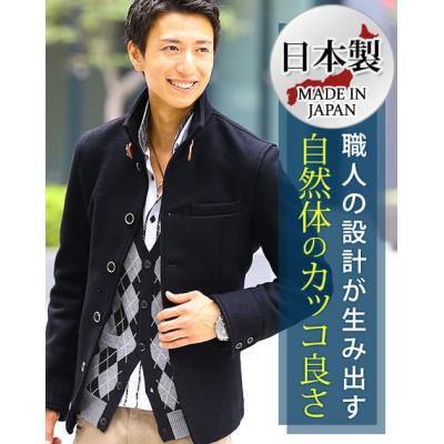日本製レザーベルト付きショート丈メルトンイタリアンスタンドコート