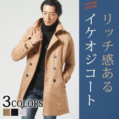 フェイクスエードレザー素材襟ワイヤー入りロングトレンチコート