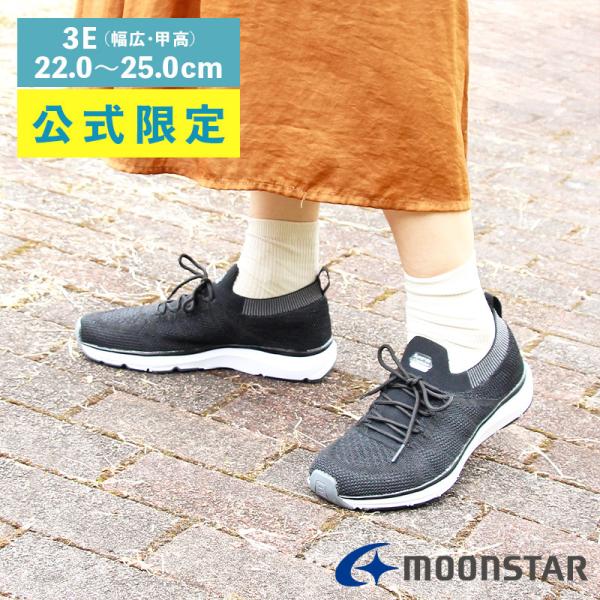 【公式限定】ムーンスター レディース スニーカー 軽量 幅広 甲高 3E ウォーキング シューズ 普段履き 運動靴 黒 軽い 母の日 moonstar SNGY L06 ブラック