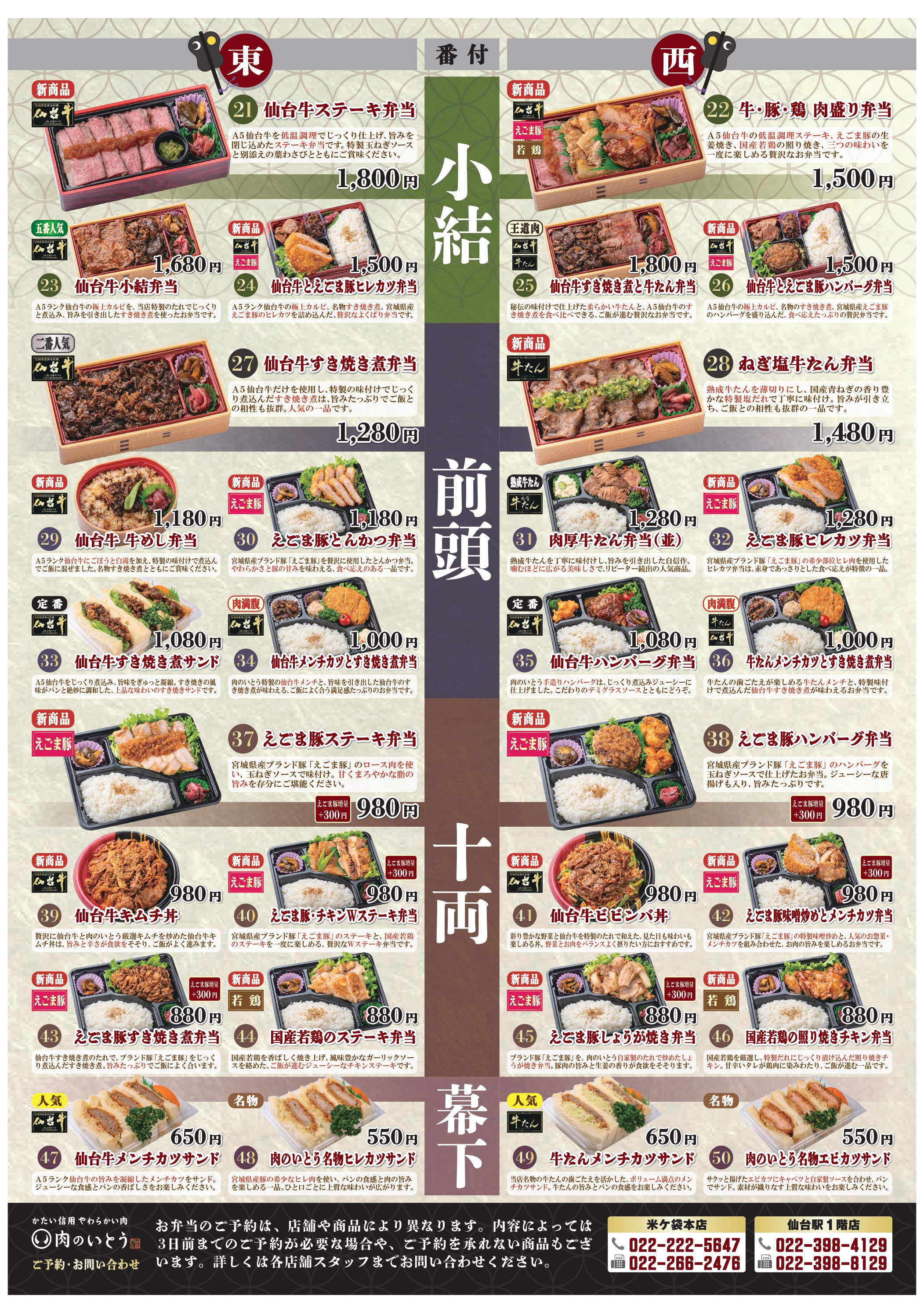 【 小 結 】 24 仙台牛とえごま豚ヒレカツ弁当 ¥1,500