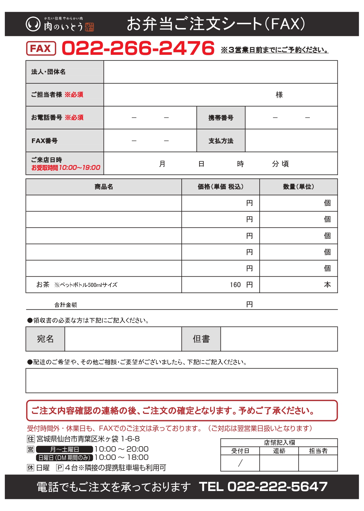 ※FAXでご注文の際は、上記リンクボタンからダウンロード後印刷してご利用ください。 |