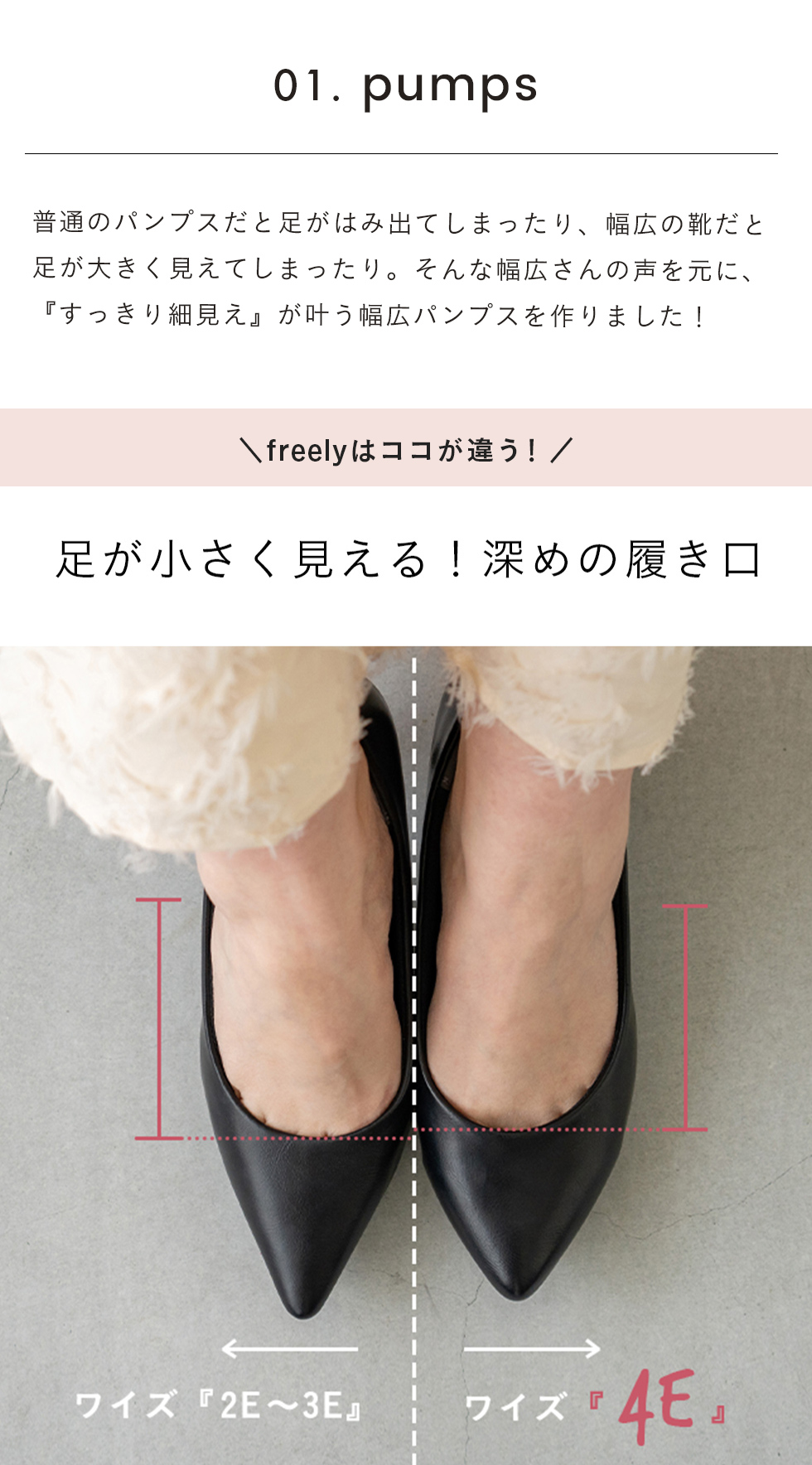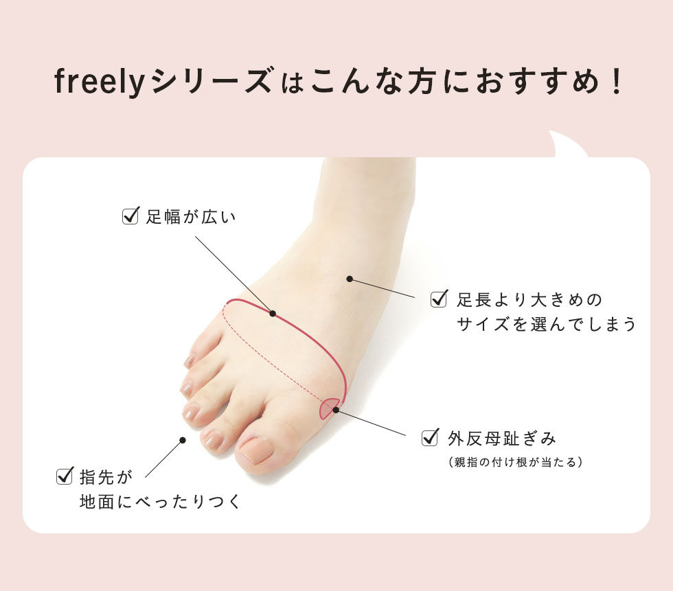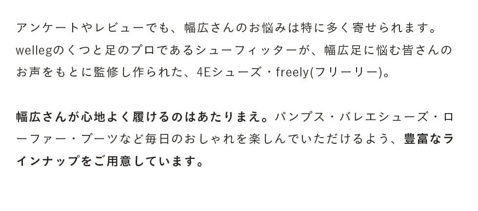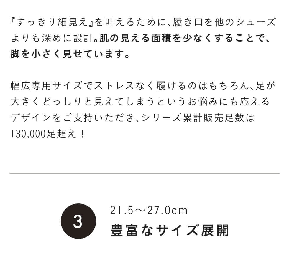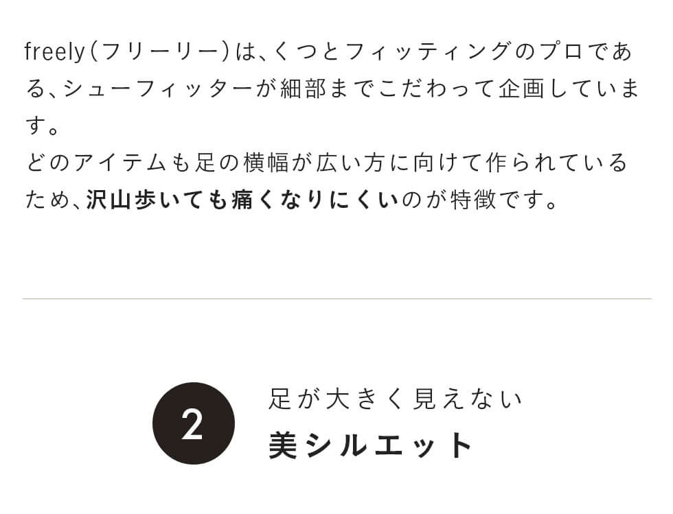 しっかり甲まわりにゆとりを取っているため、幅広さんも安心の履き心地です。