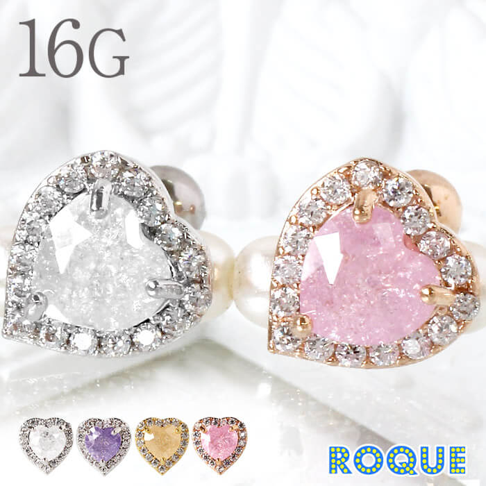 16G(ピンクゴールド/ピンク) アイスハート ストレートバーベル