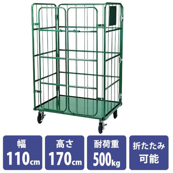 カゴ台車 扉付き 幅110cm 折りたたみ可能