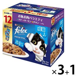 【3+1】フィリックス 猫 やわらかグリル 成猫用 お魚お肉バラエティパック 12袋×4個